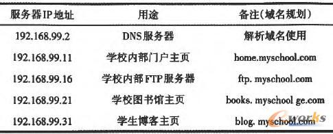 在校園網中,服務器都放置在中心機房中,中心機房IP地址規劃為192.168.99.yyy;網關為192.168.99.1。其中部分DNS相關服務器及相關規劃如表1所示。