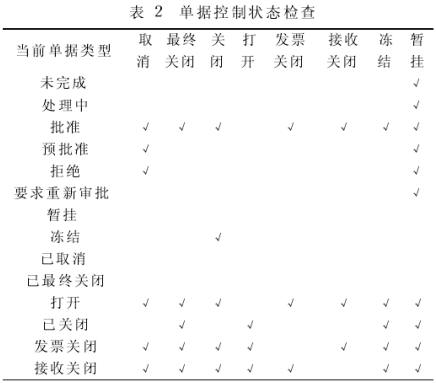 在Oracle Purchasing中,單據的控制活動主要有刪除、取消、暫掛、關閉、凍結等。系統一般設置為只有單據創建人具有訪問、修改單據的權限,其它人只分配杳看單據的權限。