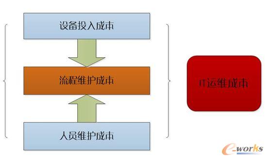 上圖說明,設備投入成本和人員維護成本很大程度上決定了流程維護成本,并最終決定著IT運維成本。