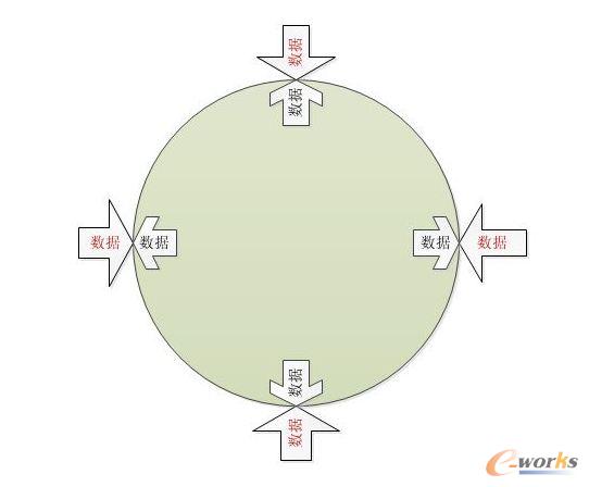 通常情況下,企業信息化系統運行狀態就上圖一樣,所有信息(雜亂)都從各個地方被收集到了這個圓圈(容量不變)里面,信息進去后不能主動流出來。可能會出現的情況:這個圓圈容器裝滿后會爆破或是溢出來;圓圈的運行速度會慢慢降下來,從而導致信息輸入的速度也會變慢。