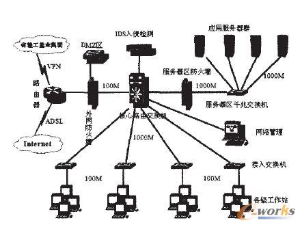 基于企業的具體要求和我們的經驗,我們設計了一個企業網絡系統的網絡架構。在網絡的設計上主要考慮了網絡的性能、可靠性、安全性以及結合國際上成熟可靠的設計思想而提出的。