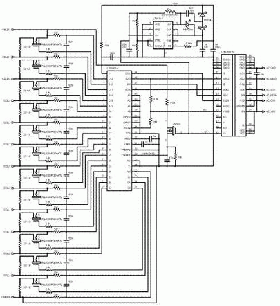 在上面實現(xiàn)的這些結(jié)構(gòu)中,都有一個常見的測量功能構(gòu)件,該構(gòu)件包括一個多通道ADC、安全隔離勢壘和某種程度的本地處理能力。圖 2 電路顯示了一個實現(xiàn)數(shù)據(jù)采集功能的可擴展設(shè)計平臺。在這個圖中,實現(xiàn)功能的核心組件是凌力爾特的LTC6803 電池組監(jiān)視器IC,同時顯示的還有一個SPI 數(shù)據(jù)隔離器和一些可選的特殊用途電路。該電路包括輸入濾波器和無源平衡功能,構(gòu)成了一個完整的12 節(jié)電池數(shù)據(jù)采集解決方案。如果需要,這類電路可以簡單地復制,以支持更多電池測量方案,同時共享主微控制器的本地 SPI 端口,該主微控制器反過來再提供外部CAN 總線或其他 LAN 型數(shù)據(jù)鏈路所需。