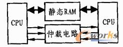 該電路的特點是成本低、簡單且存儲量大,其容量在64k~128k之間。缺點是在兩個CPU發生競爭時,有一方CPU必須等待,因而降低了訪問效率。