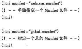 通常,可以為每一個頁面文件單獨指定一個Manifest文件,也可以僅對整個應用指定一個Mani-fest文件,具體步驟為:
