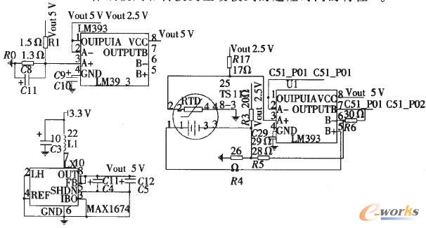 連鑄生產線的設備狀態信號有振動位移、振動加速度、轉速、溫度、電流等信號。本文選用德國HLP公司TS118-3紅外溫度傳感器,該傳感器采用熱電堆紅外非接觸測溫技術,紅外測溫技術能快速、可靠地測量熱的、危險的或難以接觸的物體,且不會污染或損壞被測物。非接觸紅外測溫技術可方便地測量物體的表面溫度,不需要機械地接觸被測物體。測溫范圍從-40℃~3000℃,加上光路后測量距離從0~10m均可準確測量。本文設計的溫度傳感器模塊電路圖如圖3所示。
