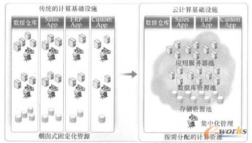 從軟件來(lái)看。計(jì)算資源池要求能夠?qū)Y源進(jìn)行靈活的分配和管理,既可以將一個(gè)服務(wù)器的部分資源分配給一個(gè)特定應(yīng)用,即“大分小”,也可以將多個(gè)服務(wù)器資源整合成為一個(gè)應(yīng)用。即“小合大”。同時(shí)還能夠在資源池內(nèi)部和外部按照需要?jiǎng)討B(tài)調(diào)整原有分配的資源關(guān)系,EtCH隨需增加或減少一個(gè)應(yīng)用服務(wù)所占的CPU、內(nèi)存等。
