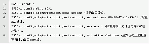 當發現主機的MAC地址與交換機上指定的MAC地址不同時 ,交換機相應的端口將down掉。當給端口指定MAC地址時,端口模式必須為access或者Trunk狀態。