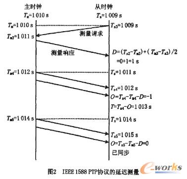 運動控制層設備要進行精確同步操作,必須有嚴格精確的時鐘,因為很多操作是在嚴格的時間表驅動下協同完成的,而時鐘的時間確定性受制于硬件晶體振蕩器質量和軟件的環境,很容易受溫度和其他因素的影響。在實際操作中,多數時鐘每天會產生5 s~15 S的時問偏差。在對時間同步要求高的場合,需要對系統的時鐘偏差進行矯正。目前,網絡上的時間同步技術主要有網絡時間協議和精確時間協議兩種。網絡時間協議的同步精度一般只能達到0.1 ms,當應用對時間精度要求較高時,不能達到要求。為了將以太網用于自動化系統的高精度時間同步,需要采用特殊的方式來滿足應用的時間精度要求。IEEE 1588標準的精確時間協議(Preci—sion Time Protocol,PTP)就是基于以太網的高精度時間同步的解決方案。