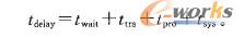 tdelay為延遲時間,指發送節點調用發送處理開始到接收節點的接收處理完全收到數據報文的時間問隔