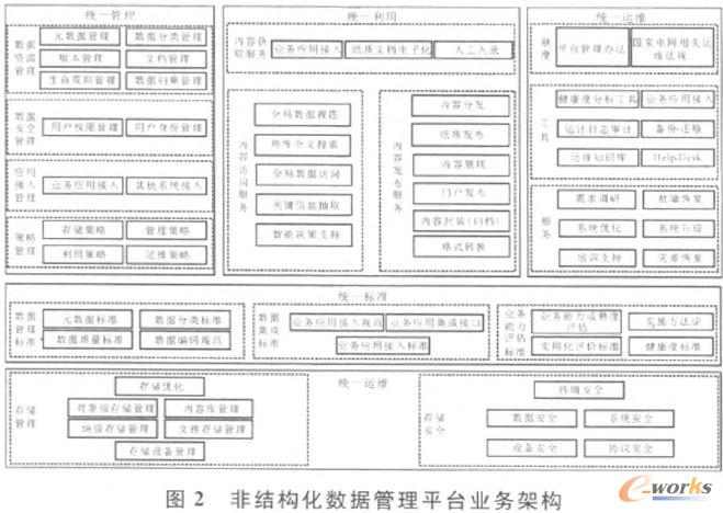 非結(jié)構(gòu)化數(shù)據(jù)管理平臺(tái)對(duì)企業(yè)非結(jié)構(gòu)化數(shù)據(jù)管理的業(yè)務(wù)能力自下而上劃分為: