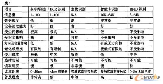 三、常見自動識別方法比較(表1)