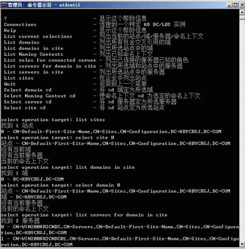 11、select servers for domain in site(列出所選域和站點中的服務器)