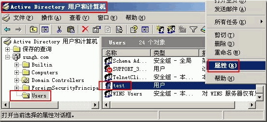 如果計(jì)算機(jī)加入了域,則單擊AD用戶和計(jì)算機(jī)中的user組中的用戶,如圖: