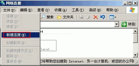 1. 桌面右擊網(wǎng)上鄰居->屬性,打開網(wǎng)絡(luò)連接。單擊新建連接,如圖所示: