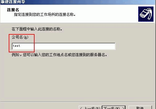 4. 在連接名對話框中,在公司名中,輸入連接名稱(連接到sungh.com域)單擊下一步;