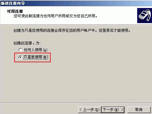 6. 可用連接上選擇“只是我使用”,單擊下一步;