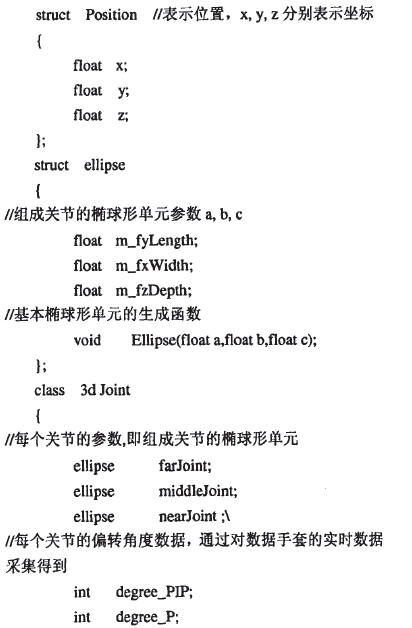 這種模型結構模型表面相對光滑,可伸展性強,適用于虛擬手的實時變化.一個橢球形單元由三條軸線控制,表面光滑,尤其對于手掌不規則的弧形表面。虛擬手運動的時候只需要改變相應橢球形單元的三條軸線的位置和方向即可。