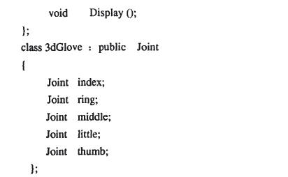 虛擬手的幾何模型設計是一種典型的對象設計范例,可以將數據以及對數據的操作放在一起處理。對應虛擬手的類設計如下: