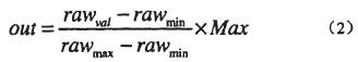 在手套開啟和每次更換用戶后,需要重新設置并實時更新各傳感器原始數據。通過線性的數學公式,根據原始數據的最大值和最小值,以及設定的數據取值范圍來得到獲取數據。其公式為: