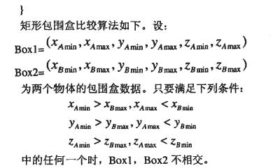 如果上述條件不滿足,則作為第二步:對被檢測幾何模型的包圍盒進行劃分,再做如上判斷。直到對包圍盒的劃分到達某一精度要求時候,確認是否發生碰撞。