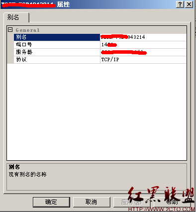 建立服務(wù)器端別名。在SQL Server配置管理中,點“SQL Native Client配置”-> “別名”,新建別名,名稱填寫服務(wù)器的名稱,端口和服務(wù)器地址根據(jù)實際情況填寫,如下圖:
