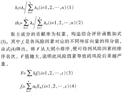 由處理后形成的相關矩陣求出其n個非負特征值并將其從大到小排序.計算特征值的單位特征向量d。。根據主成分貢獻率的大小選取前s個主要的專家評分構造綜合評價函數。確定s的方法是前s個主成分所包括的原始變量的信息達到一定的比例。此比例稱為累計貢獻率,一般達到85%即可。主成分的貢獻率按式(1)可得出,累計貢獻率按式f2可得出。