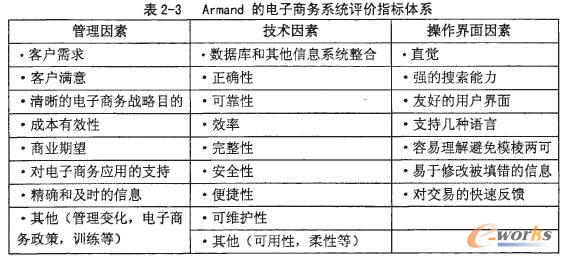 由于電子商務在我國的應用還處于初步階段,國內關于電子商務系統績效評價指標的研究主要集中在電子商務網站評價指標和電子商務系統的價值評價指標方面;關于電子商務系統的成功評價指標的研究才剛剛起步,研究成果很少。國內關于制造業企業電子商務系統績效評價的研究非常缺乏。