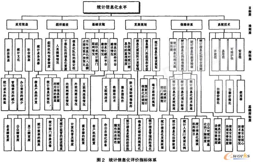 統(tǒng)計信息化是一項系統(tǒng)工程,是統(tǒng)計行業(yè)應用信息技術及信息產品,促使統(tǒng)計業(yè)務變革,改進統(tǒng)計方法的過程。其建設過程實際上也是—個不斷評價和完善的過程。對統(tǒng)計信息化建設的評價不僅是一個檢驗的體系。更重要的是一個建設指導的體系。通過對統(tǒng)計信息化的評價,一方面可以徹底檢查統(tǒng)計信息化的現狀、所處階段,并與統(tǒng)計信息化的既定目標對比,發(fā)現實施過程中存在的問題.找出差距;另一方面。總結經驗和教訓,并結合各地區(qū)、各部門的現狀。根據新環(huán)境和新業(yè)務而調整.對統(tǒng)計業(yè)務流程進行再造。改善統(tǒng)計業(yè)務管理模式。關于信息化建設水平評價的一般模型,如諾蘭模型、軟件成熟度模型和技術—信息卓越度模型都在一定程度上描述了信息化水平,因此都可以成為統(tǒng)計信息化水平測評指標體系的參考模型明。