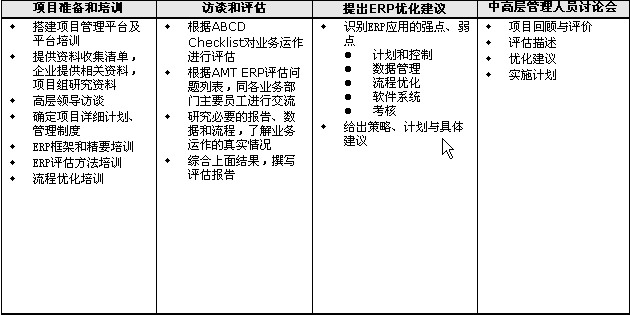 ERP評估,Oliver Wight是重要的一種。這種評估的思路是,找出同MRPII系統標準之間的差距,制定詳細的整改、優化措施并負責實施和檢查,確保各相關考核指標和考核內容在計劃時間內達到A級標準所規定的要求。在國內,科龍、華為都由Oliver Wight進行了ERP的評估。