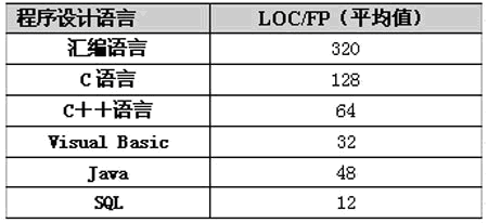 表4各類程序語言構建一個功能點所需的平均代碼行對照表