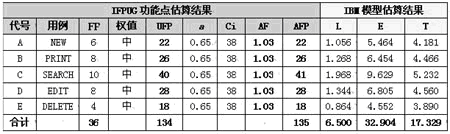 若系統使用JAVA語言實現,則功能點轉換代碼行數,IBM模型估算結果如表5所示。
