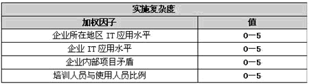 另一方面,功能點估算中“調整因子表”包括的14種調整項,沒有將企業IT水平、員工素質、實施團隊等“軟”因素考慮進去,因此不能完全反映和體現ERP項目的特點。監理方應對這類“軟”因素進行分析,將其對項目進度的影響準確的反映到計劃中。因此對“調整因子表”中的調整項可進行適當的擴展。擴展項如表7所示。