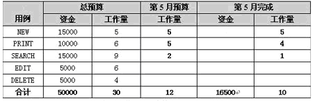 表6中顯示“NEW”用例已完成,“PRINT”用例完成大半,“SEARCH”用例剛開始。數據顯示項目實際進度比計劃落后一點,但總投資控制得很好,只要在以后幾月內加快進度,完成項目是不成問題的。實際通過“掙值分析法”分析結果是: