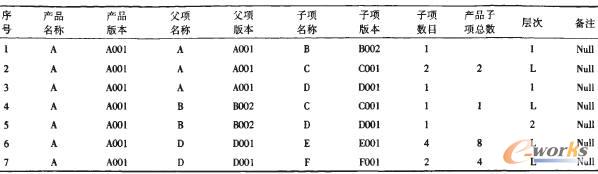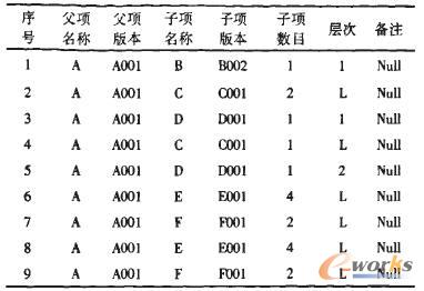 表2 產品A的多層BOM表的數據庫記錄