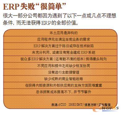 實際上,很大一部分公司因為遇到了前表中所列的一點或幾點不理想條件而無法獲得ERP的全部價值。