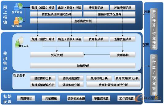 通過靈活的借款及費用報銷等審批工作流的配置,滿足企業復雜的審核要求;通過預算編制及控制,規范企業的日常開支,將費用的事后控制向事前的合理性審核轉移;通過與應付、現金管理、網上銀行的集成,保證報銷業務的快速支付,滿足出差人員的用款需求。