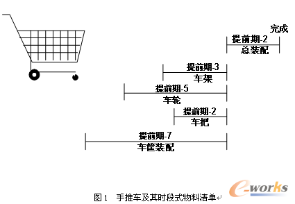讓我們來看一個例。圖1中顯示了手推車的時段式物料清單,其中表明為了保證總裝配的按時完成,各種零件和子裝配件應當何時開始購買或裝配。物料需求計劃模塊使用圖中顯示的提前期來確定物料的需求時間。物料清單中的活動構成了不同的序列,其中最長的活動序列稱為關鍵路徑。例如,車筐裝配加上總裝配構成一條關鍵路徑。手推車的累計提前期(Cumulative Lead Time,簡記為CLT)是關鍵路徑所占用的時間,即9個時區。每項產品都有自己的累計提前期,任何主生產計劃物料項目的最小的計劃展望期可以用其累計提前期來表示。每項主生產計劃物料的累計提前期互不相同,最長的累計提前期將作為公司的最小計劃展望期。但是在實踐中,計劃展望期總是要比最長的累計提前期更長一些。這是由于能力、設計和采購方面的原因引起的。
