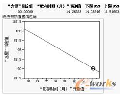 最后,再用JMP軟件基于前面得到的回歸模型進行反向預(yù)測(如下圖所示),可以求得含量降解到90%時,需要經(jīng)過的平均時間是14.26個月,這個時間95%的置信區(qū)間是14.03到14.52個月。因此,我們可以更保守、同時也更有把握地說:該藥品在40度下的有效期是14個月。