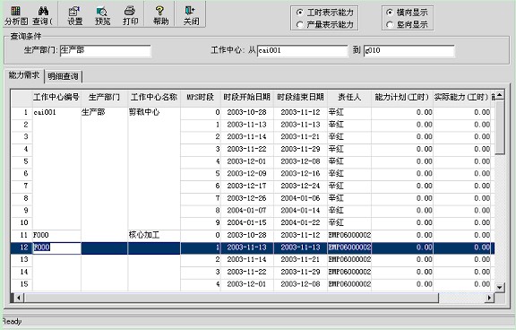評估之前應點“引入”按鈕引入最新的主生產計劃;同時如果在評估主生產計劃時進行了調整,則應將調整后的計劃點“引出”按鈕引出到主生產計劃表,否則評估的能力計劃與實際發放的主生產計劃將不相符。