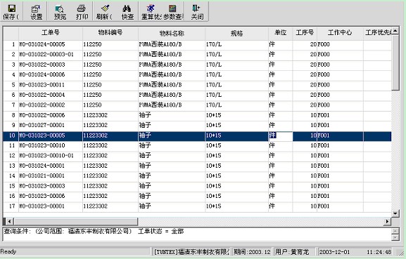 3、 點擊設置查詢條件視窗上面的“確認”按鈕,系統將會顯示所需查詢的工序優先順序重算的工序資訊。