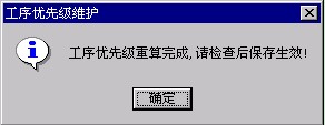 4、 選擇需進行工序優先順序重算的工單(或全選所有工單),點擊“重算”按鈕,系統可重新展開工序優先順序的計算并給出提示,如下圖04-26所示: