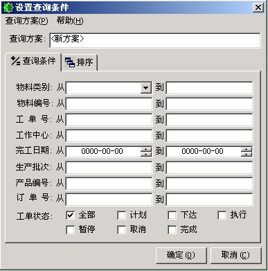 2、 點擊“查詢”按鈕,彈出設置查詢條件視窗,設置查詢條件,可查詢需進行工序優先順序重算的工序資訊。