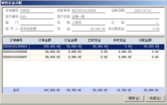 定金分配數據輸出的方式有兩種:另存為EXECL文檔、打印。詳見《單據打印設置手冊》。請參見《單據打印設置手冊》。