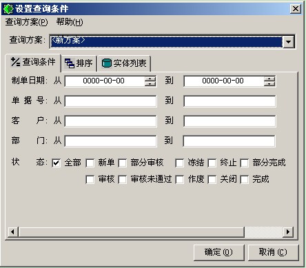 在單據查詢界面查詢的方式有三種:移至、查詢、自定義查詢。查詢界面如圖2-27所示。界面查詢條件有單據日期、單據號、客戶、部門、狀態。系統默認的查詢條件是當前期間、所有客戶、所有部門、各種狀態的所有單據。用戶要以根據需要對此進行組合查詢,請參見《公共操作手冊》’中的相關內容。