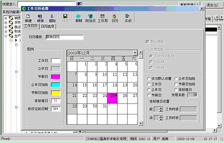 1、 系統為實現對多實體、多工作中心不同工作日歷的靈活設置,設定不同的工作日歷類型對每一類型確定日歷初始起算日;確定該工作日歷類型是否使用大小禮拜、