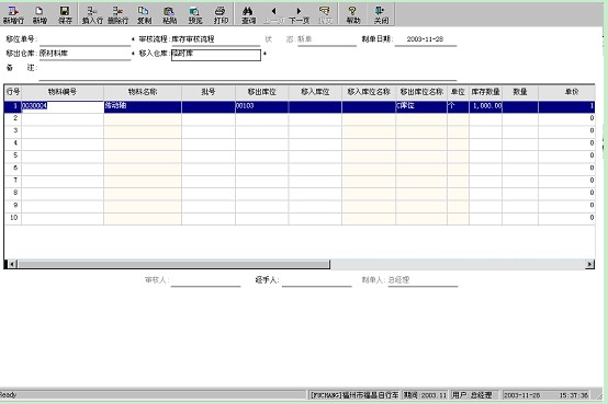 若移出倉庫不設置庫位,則無此字段。若移出倉庫設置庫位,此庫位必輸 |