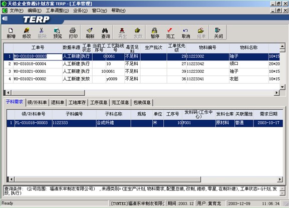 1、 計劃工單——沒有領料單,計劃員進行相應需要的調整后才下達到車間執行;
