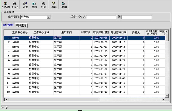 主生產計劃的能力需求,只是在此處類比計算將不對所有的主生產計劃重新進行能力分析,而僅僅對零星計劃作計算。同時如果零星計劃的物料還未定義工藝路線的話,在此系統會給出出錯提示。