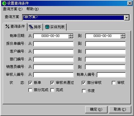 7. 操作工具條上的”查詢”按鈕或”編輯”菜單上的”查詢”子菜單,可對報價單進行查詢。