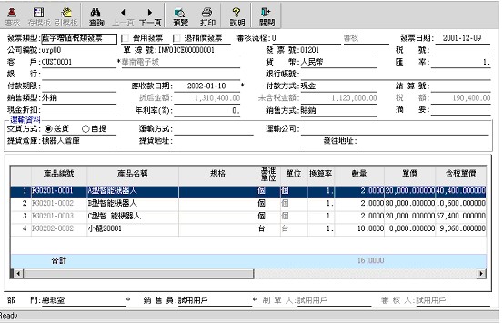 必錄項目。系統給出四種類型,開票時用戶可以選用一種,但不能維護。 |